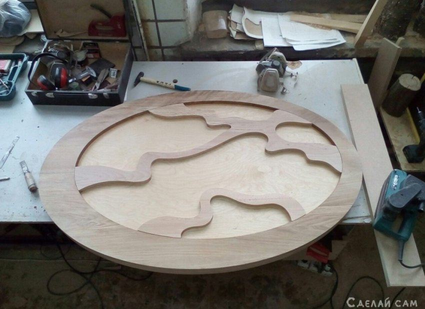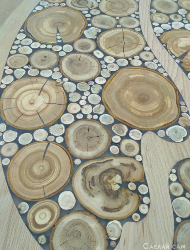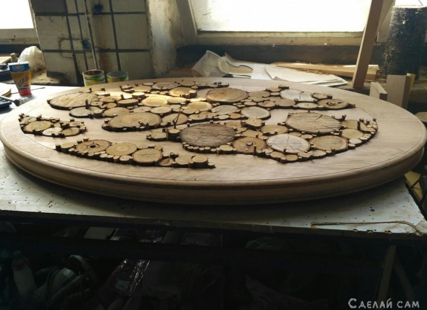 Вашему вниманию хочу представить необычную столешницу, сделанную из спила веток, с фигурными канавами, объемом и т.д. Сделать такую вещь сможет любой при наличии базовых умений работы с инструментами и желанием.