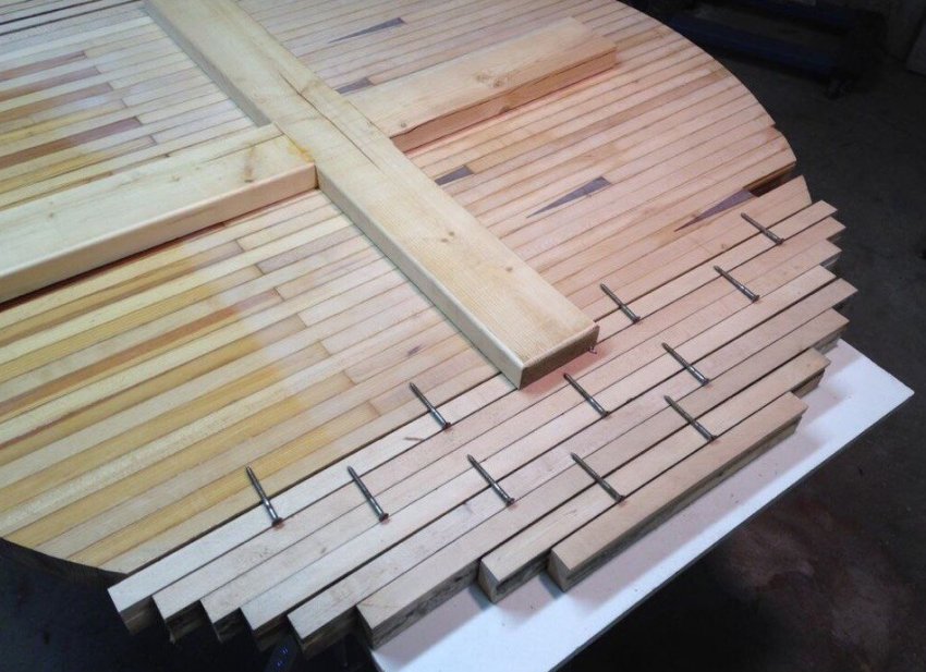 Более капитально вопрос был решен с помощью саморезов. Тут главное не переусердствовать. Нужно добиться момента, когда шляпка самореза уже стала заподлицо с рейками, что бы не образовалось щелей, и в это же время, доски не начали перетягиваться, меняя свою форму. Также не стоит пренебрегать клеем для дерева. Как доп. средство - вполне нормально. Скорее всего, проблема в том, что я подобрал не совсем тот клей, или в отсутствии затяжек.