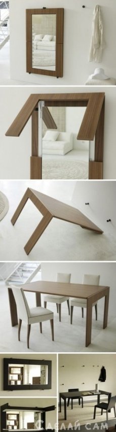 Стоимость квадратного метра жилой площади сейчас только растет. Строительные компании изначально строят намного больше маленьких квартир, с площадью до 30м2. В таких квартирах каждый квадратный метр на вес золота. Именно для вас, жители таких малометражных квартир я решил сделать подборку из 11 оригинальных идей раскладных столиков своими руками.