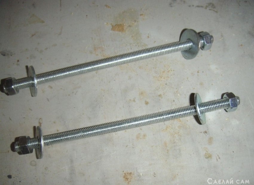 Крепим блоки между собой с помощью длинных шпилек-винтов.