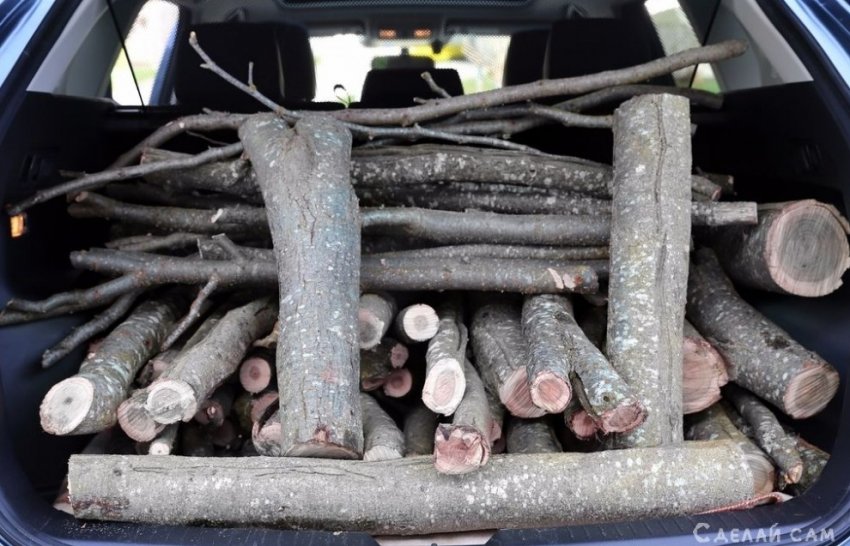 Для начала было собрано большое количество дров. Руки остались в мозолях, пилили ручной пилой. Но оно того стоило. Материал отличный.