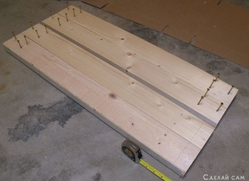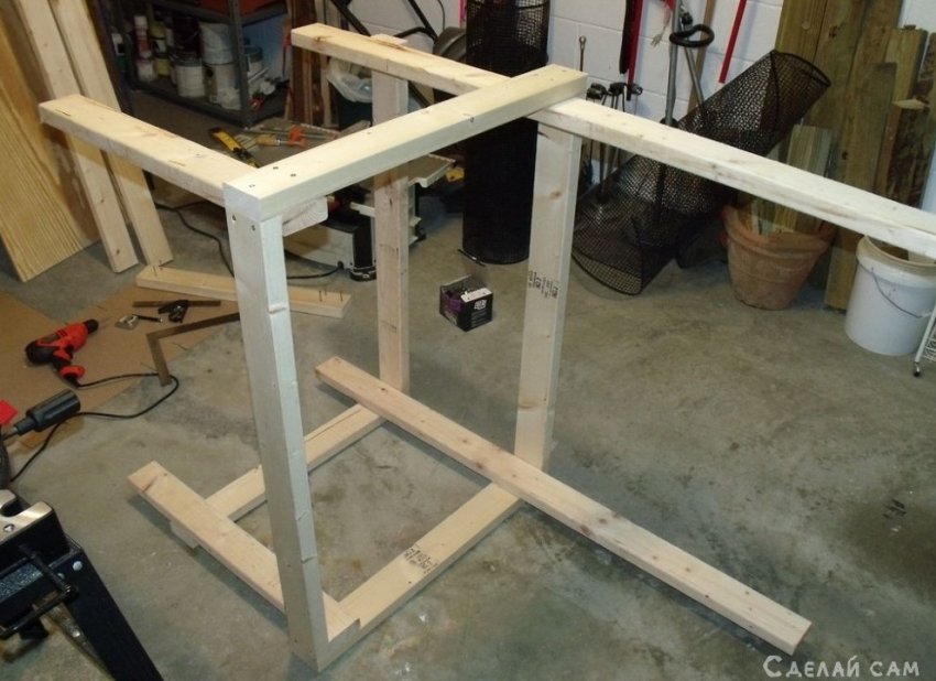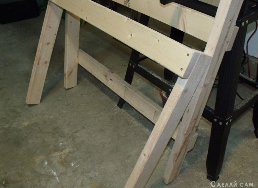 Ножки соединяем между собой с помощью досок (боковые).