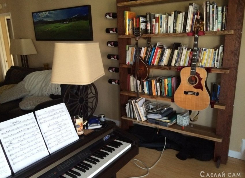 А вот что у нас получилось. Многофункциональный уголок с гитарой, книгами и вином. Что может быть лучше ;)