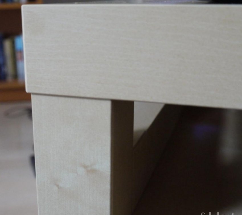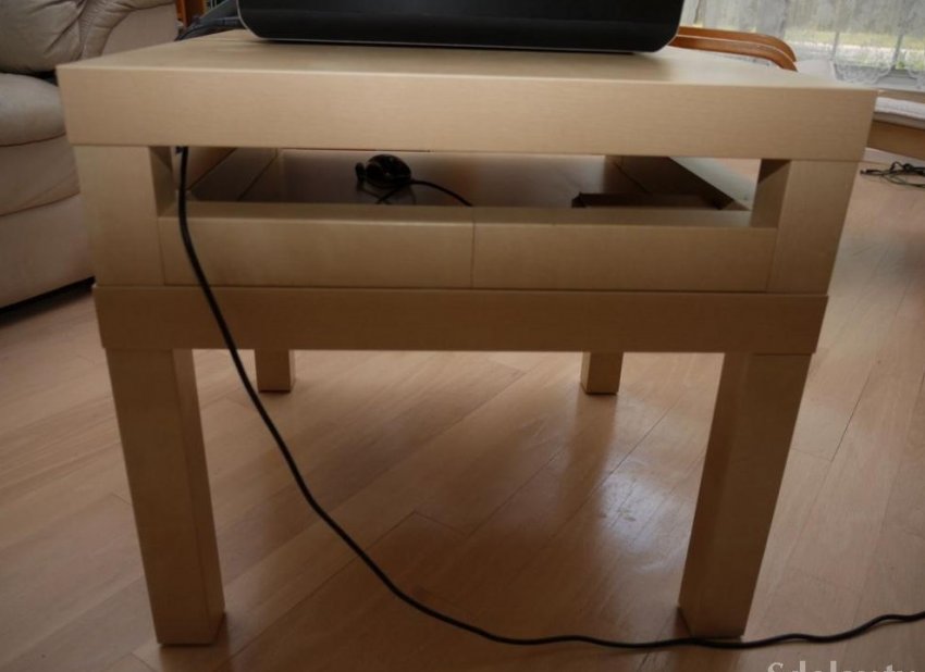 Так вот, из двух неудобных подставок фирмы ИКЕА, я решил сделать одну, но удобную. Такую, которая смогла бы полностью меня удовлетворить в данном плане. Для удобства, ножки одного столика были подрезаны практически под верх, после чего эту часть (обрезанную) необходимо разместить сверху. Таким образом у нас получается столик с двумя столешницами.