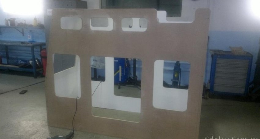 Решили приобрести кровать-машину своему ребенку. Почему машину, вы, наверное, догадаетесь сами, так как мальчику два года. Объездив и просмотрев все те кровати, которые предлагают производители мебели для детей, мы выбрали именно автобус, потому что в нем два яруса и ребенку понравилось. Но узнав цену (40000 рубликов и без матрасов?!!!!!!!!!), посмотрев на качество исполнения, я решил сам сделать своему чадо это чудо- кровать. Просто хотелось, чтобы это была единственная в своем роде кроватка. Просмотрев очень много сайтов о том, как люди собирают кровати дома своими руками - респект вам всем! Я понял, что смогу сам придумать и сделать не хуже. Нет, я не занимался плагиатом, не срисовывал все те модели кроватей, сделанные производителями. Я только приблизительно взял размеры и сделал небольшой рестайлинг будущей кроватке.Заранее прошу прощения за задний план на фото. Делал на работе т.к. дома места маловато! Приобрел два листа МДФ толщиной 16 мм. Начертил на листах макет и. выпилил лобзиком (ведь профессионального инструмента, к сожалению, нет) все окна и двери. Произвел предварительную сборку и отметил все расположения под конфирматы (еврошуруп) и шконты Отмерил и отпилил фанеру 9мм по форме этажей. Также придумал переднюю панель, как у авто. Примеряем лестницу… Обработал все края (ведь лобзиком не все ровно получается) наждачной бумагой. Делаем панель для руля и кнопок включения фонарей. Устанавливаем подсветку и фонари. ? Очень долго думал, как автобус разукрасить, ведь я не художник. Поэтому я решил с помощью компьютерных технологий нарисовать его в электронном виде и отпечатать в типографии. Обклеиваем кроватку Обклеиваем гибким профилем края, чтобы были безопасными. ?Устанавливаем колеса, чтобы крутились. Ведь это главное для ребенка! Подключаем всю электрику. ?Последняя сборка перед домом пора в рейс!!! Перечень затрат на кроватку. Два листа МДФ ламинированного с одной стороны 2050х3000 16мм - 3000р. Фанера 9мм., брусок 40х40 - 1500р. Гибкий профиль п-образный 50метров - 1000р. Лестница из нержавейки заказная - 4000р. Фонари, лампочки, блок питания 12V - 2000р. Фурнитура (конфирматы, шконты, шурупы, клей) - 500р. Колеса 2-шт. - 1000р. Матрасы (со скидкой) - 5000р. Наклейка ламинированная безвредная - 6000р. Инженерная мысль и работа - в удовольствие и радость! Размер 2050х165х85. Итого : 24000 рублей Конечно, для этой кроватки в наших квартирах места, скажем, маловато, но для ребенка можно и подвинуться. Судить вам, друзья, как это у нас получилось! Но малыш рад, и мы довольны! С уважением Павел.