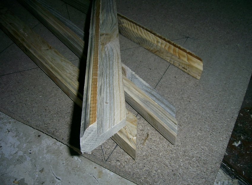 Для столешницы понадобится 4 строганых бруска 40 на 45 мм, длина 600 и 900 мм. Далее вырезаем угол ( четверть ) как на фото.