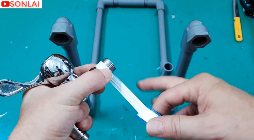Автор утверждает, что в колене, на котором установлена дополнительная конструкция из толстой трубы, будет более высокое давление воды, а значит и напор из крана будет больше. При этом он приводит довольно неожиданное обоснование. Попробую его процитировать: