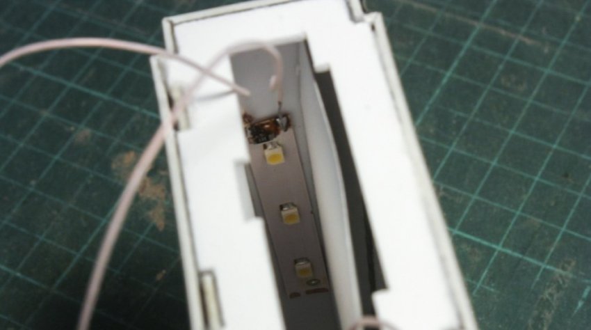 Не менее важным элементом макета является подсветка. Она придает макету эффектность и реалистичность. Устанавливаем уличные фонари. Внутрь макета вмонтирован блок питания на 12 вольт, реализован монтаж электрической схемы макета.