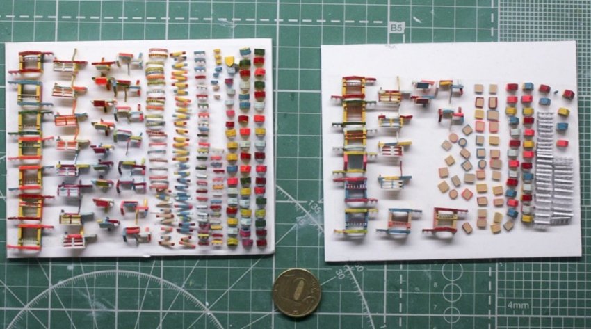 Не менее важно уделить внимание малым архитектурным формам. Создаем сооружения для детских и спортивных площадок. Для изготовления нам понадобятся пластик ПВХ толщиной 1мм, полистирол 0,5 мм и картон. После готовности все объекты нужно окрасить.