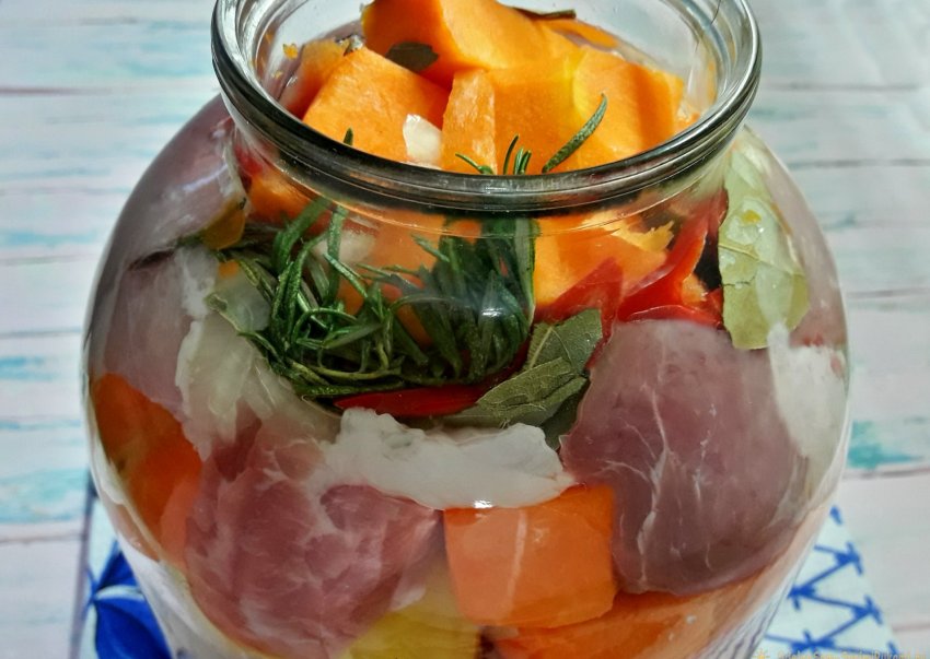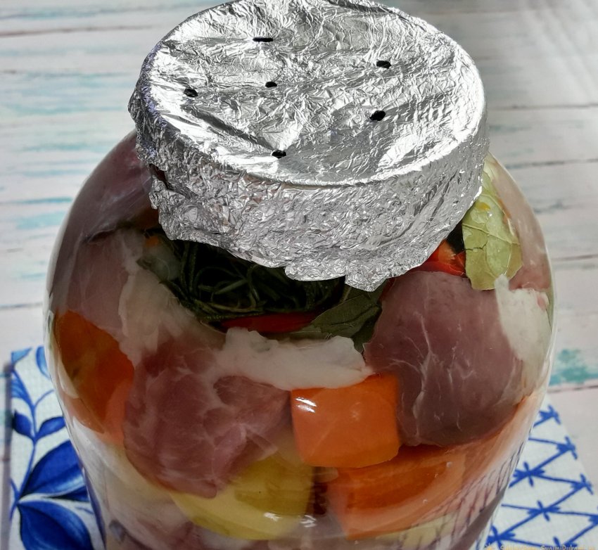 Этот рецепт облегчит труд многих хозяек, ведь мясо с овощами нужно просто сложить слоями или как угодно в 3-хлитровую банку и забыть на некоторое время в духовке. Кстати, банку можно потом просто выбросить.