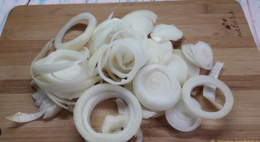 1. Все ингредиенты следует заранее подготовить, а именно - лук нашинковать кольцами.