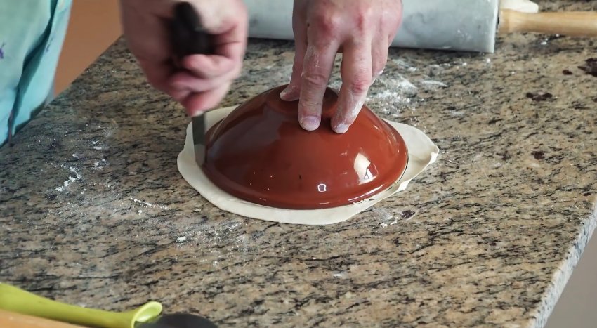Чтобы чебурек получился аккуратным, можно вырезать тесто по тарелке.