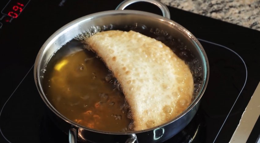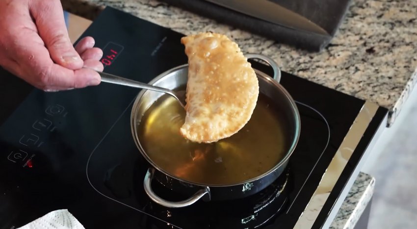 Жарятся чебуреки на среднем огне сначала с одной стороны, а потом с другой.