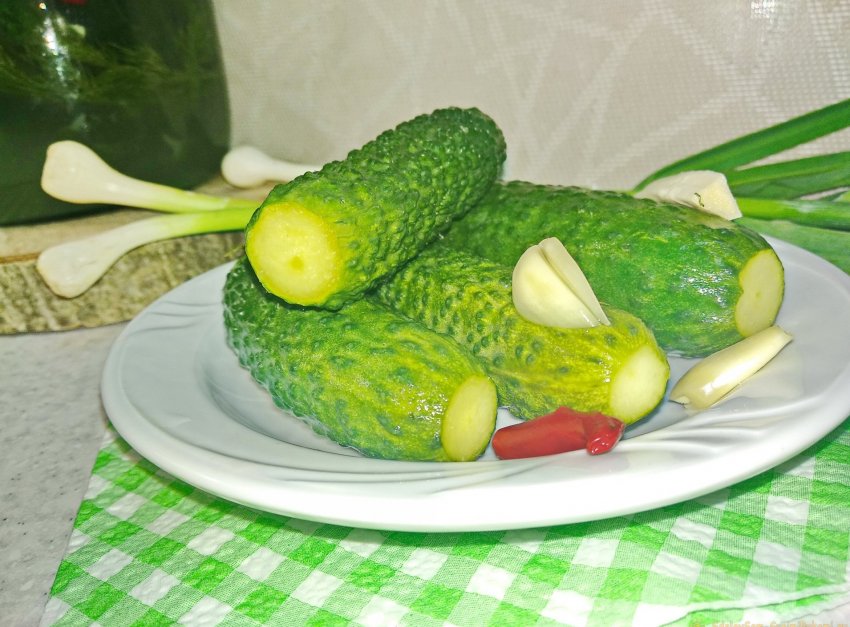 Малосольные огурчики – любимая закуска. Готовится быстро и просто. Хрустящие малосольные огурчики можно взять на пикник, также закуску подают на обед к мясу или рыбе. Для приготовления нужны молодые огурчики длиной до десяти сантиметров, именно такие овощи получаются самые вкусные и нежные. У таких огурчиков практически ещё нет семян и нежная кожица.
