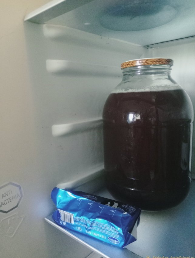 Когда теплая вода в емкости остынет до комнатной температуры, квас можно переставлять в холодильник на ночь.