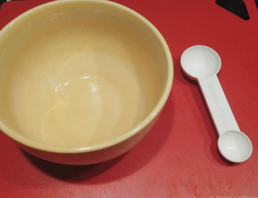 Необходимо приготовить емкость для смешивания ингредиентов. Она обязательно должна быть сухой. Это важно! А также понадобятся столовая и чайная ложки для измерения ингредиентов.