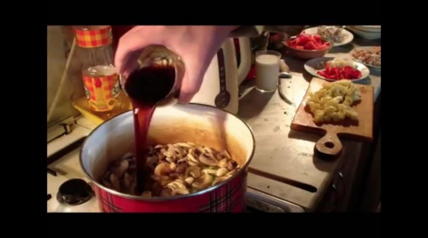 Справа от молока стоит соевый соус, потребуется полстакана, за неимением тайского вонючего рыбного соуса из гнилой рыбы :) Его в России, думаю вообще не достать из-за сложности транспортировки :):):)