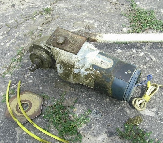 Триммер из болгарки . В любой момент болгарка с лёгкостью превращается в косилку , и наоборот .Для косилки нужно добавить удлинитель или мягкий двойной провод сечением 2,5, розетка , выключатель и вилка . Разрезать провод со стороны розетки 30 см и вставить выключатель (желательно от дрели , болгарки той же мощности)