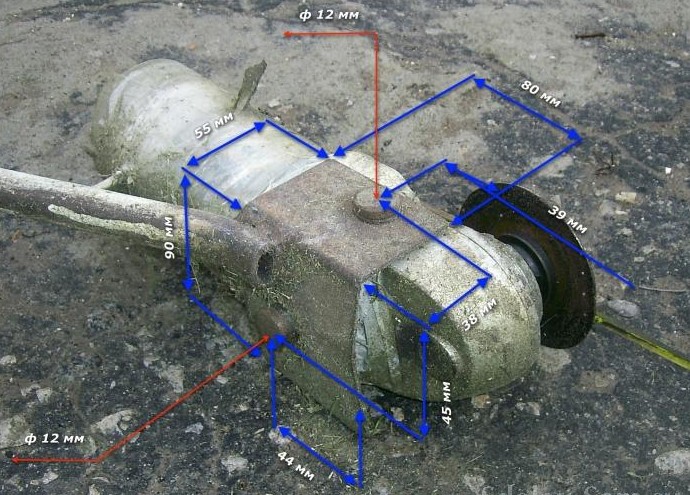 Триммер из болгарки . В любой момент болгарка с лёгкостью превращается в косилку и наоборот .Для косилки нужно добавить удлинитель или мягкий двойной провод сечением 2,5, розетка выключатель и вилка . Разрезать провод со стороны розетки 30 см и вставить выключатель (желательно от дрели болгарки той же мощности) В моём случае пользоваться болгаркой я не буду поэтому убрал часть корпуса болгарки с кнопкой чтобы уменьшить размеры . Главное надо закрыть все отверстия для охлаждения я заклеил их скотчем, а корпус- частью от пластиковой бутылки . Так как вентиляция закрыта то надо не перегружать . Все детали косилки собраны из подручных средств корпус и ручка взята с отопительной 15-й трубы крепление с болгаркой стальная пластина от 2 до 3 мм согнута под углом 90 гр., и приварена к трубе под углом 45гр. Ручка (уголок трубы) 90гр. крепится к корпусу болтом резьба М10 и можно регулировать под рост за него же цепляется ремень. Все размеры на фото крепления указаны для болгарки с диском на 180 . Поэтому отверстия для болтов надо подгонять под размеры корпуса болгарки. Выключатель перенёс на край корпуса, добавив 1,5м. медного провода 2,5сеч., и закрепил изолентой предварительно изолировал (вставил в камеру с велосипеда) Самое главное и сложная деталь В моём случае - это крепление лески . Уменя ушло несколько месяцев на тесты различных версий креплений чтобы добиться желаемого результата . Крепление делается из двух старых алмазных дисков по камню . вырезается болгаркой серцевина диска как на фото. Стачиваем ещё углы затем эту сердцевину диска ставим на болгатку и сильно не давим точим об наждачный камень до круга ф90мм. 2шт. Отмечаем диаметр 50мм. на одной и сверлим отверстия как на фото .Отверстия 4,5 и 3,5 это для лески 4 и 3 диаметра . Можно просверлить и 2,5 для лески 2,5 . Крепим леску как на фото леску 18см. вставляем в отверстия и загибаем . Длинный край лески должен быть между двух дисков эажимаем гайкой посильней ( гайку переваорачиваем) . Прошло больше трёх лет, всё работает ! Добавил регулятор оборотов, косить стало гораздо лучше. Если травы мало и молодая обороты убавляю что бы не напрегать мотор. Ещё убрал крепрение лески, что описывал в начале. Оставил стандартное заводское крепление дисков и ими зажимаю леску (только леска типерь должна быть толстой, уменя 4 мм) иначе будет скручиваться. Всё- можно косить но не забываем о технике безопасности и спец одежде !