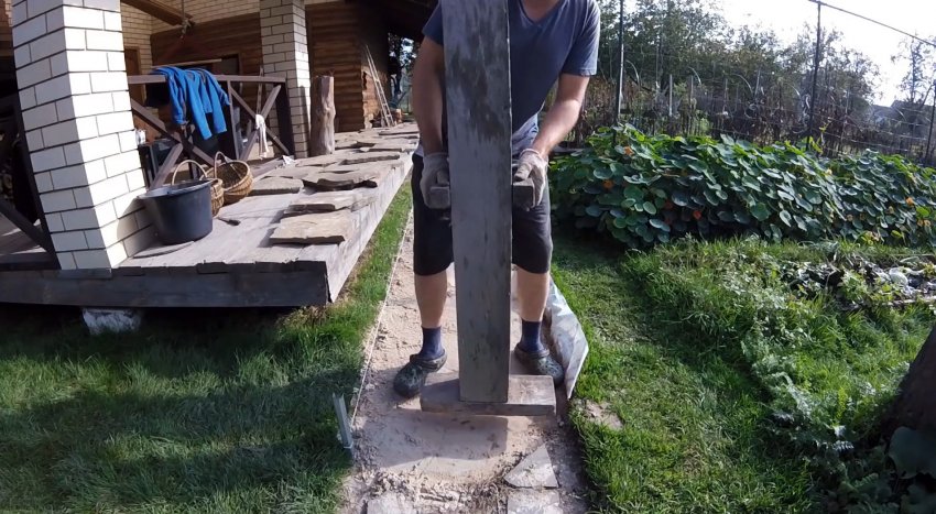 Сажать камни можно резиновой киянкой, или слегка постукивая той же трамбовкой.