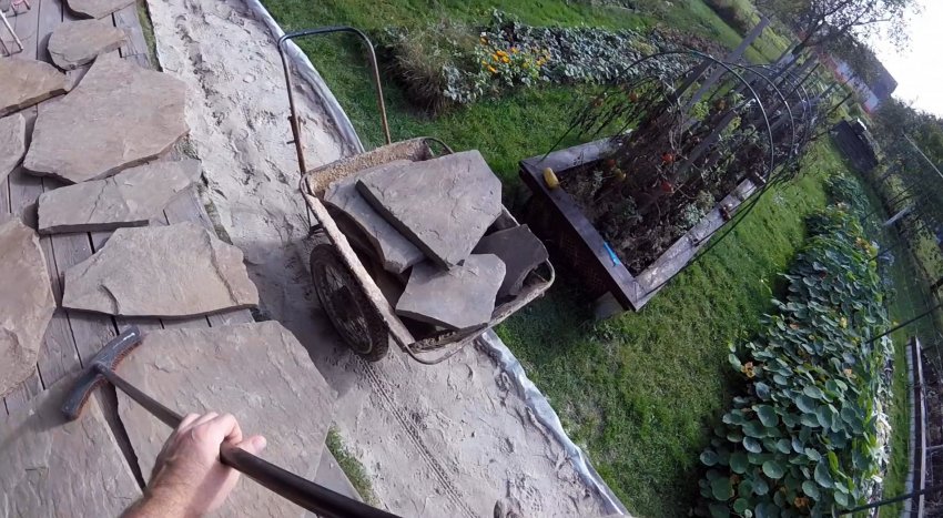 Дикий камень очень красивый и долговечный материал для мощения садовых дорожек, но, к сожалению, он существенно дороже бетонной плитки. Поэтому остановив свой выбор на нем, неплохо бы сэкономить на привлечении квалифицированных строителей, и уложить его своими руками. Это вполне реально, даже если иметь самые простые инструменты.