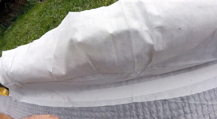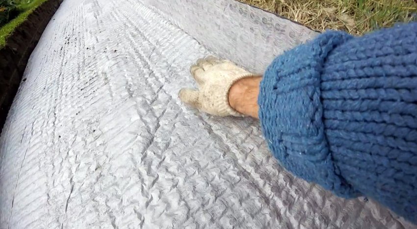 По окончанию работ остается только срезать выступающие бортики мембраны и геотекстиля.
