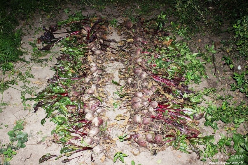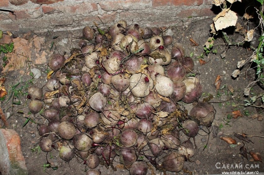 В один год убрал свеклу и морковь-часть унес на хранение в сарай по вышеописаному варианту, часть осталась на огороде-я просто про нее забыл, завозился, работа и прочее)).
