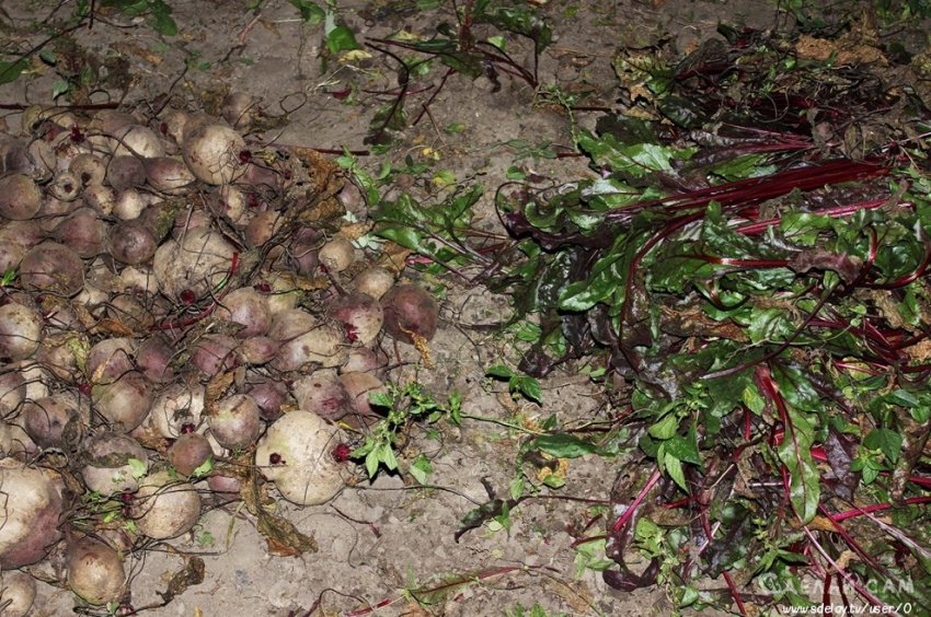 Складываю нашу свеколку-кучки делаю не большие по 20-30 кг.
