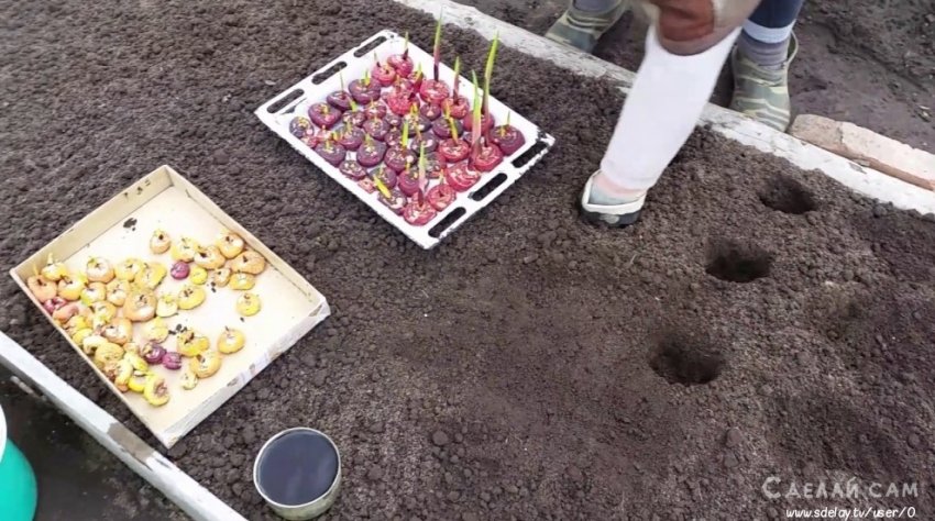 За 3 недели перед посадкой с луковиц снимают шелуху, ведь там могут сохраняться трипсы и вредные микроорганизмы. Если есть темные пятна, то их аккуратно вырезают и обрабатывают обеззараживающими препаратами. Перед самой посадкой в почву луковицы замачивают в марганцовке на 20 минут.