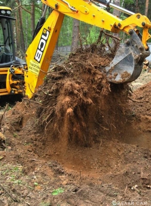 Дерево можно просто выкопать из земли, применяя большую технику, такую как экскаватор, бульдозер. Плюсов этого метода много можно убрать пень больших размеров за быстрый срок, есть и минусы. Эта техника очень дорогая и не на каждый участок сможет поместиться. Может сильно навредить грунту. Техникой можно воспользоваться только в том случае, если застройка только начинается и если другие методики не подойдут.