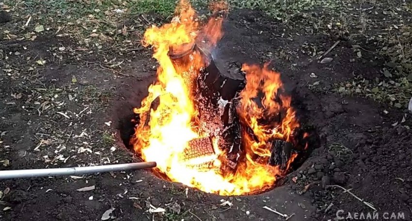 Можно остатки дерева переработать в смолу. Для этого метода понадобится сделать в пне дыры и поджечь их. В первое время, чтобы лучше разгорелось, нужно поддерживать огонь и снимать подгоревшую часть. Если пень очень старый и твёрдый можно развести огонь на нём, он будет прогорать, и постепенно на его месте образуются ямка.