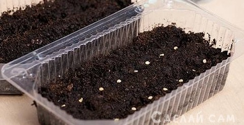 - Высыпать более менее равномерно семена помидор на почву в емкости, присыпать землей так, чтобы не было видно зерна.
