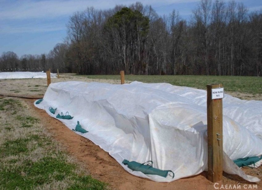 Так как этот кустарник недостаточно устойчив к морозам, да еще и плодоносит на прошлогодних побегах, необходимо тщательно укрывать посадки на зиму. Можно позаботиться об укрытии посадок заблаговременно и соорудить проволочный каркас, это значительно упростит сам процесс. К этому этапу защиты нужно приступать, когда устойчиво будет держаться небольшая минусовая температура (приблизительно -5°С). В качестве укрывного материала лучше использовать агроволокно белого цвета (прекрасно подойдет спанбонд или лутрасил), который укладывается в два слоя на растения либо на каркас. Многие специалисты утверждают, что необходимо создавать воздушные прослойки между укрывным материалом и растением – это послужит дополнительной защитой от морозов. Можно в качестве дренажа использовать пластиковые бутылки, которые укладываются на растения, а уже потом проводят укрытие.