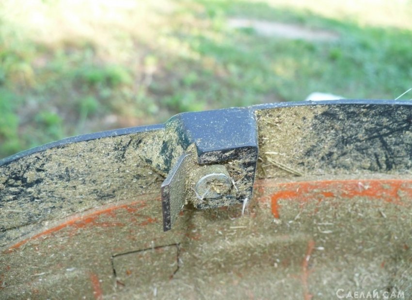 Не убегая далеко-прикручиваю сразу проушину для крепления ремня-ее предлагаю затянуть по туже-по тому как это будет удобней для дальнейшей регулировки положения косилки и ремней.