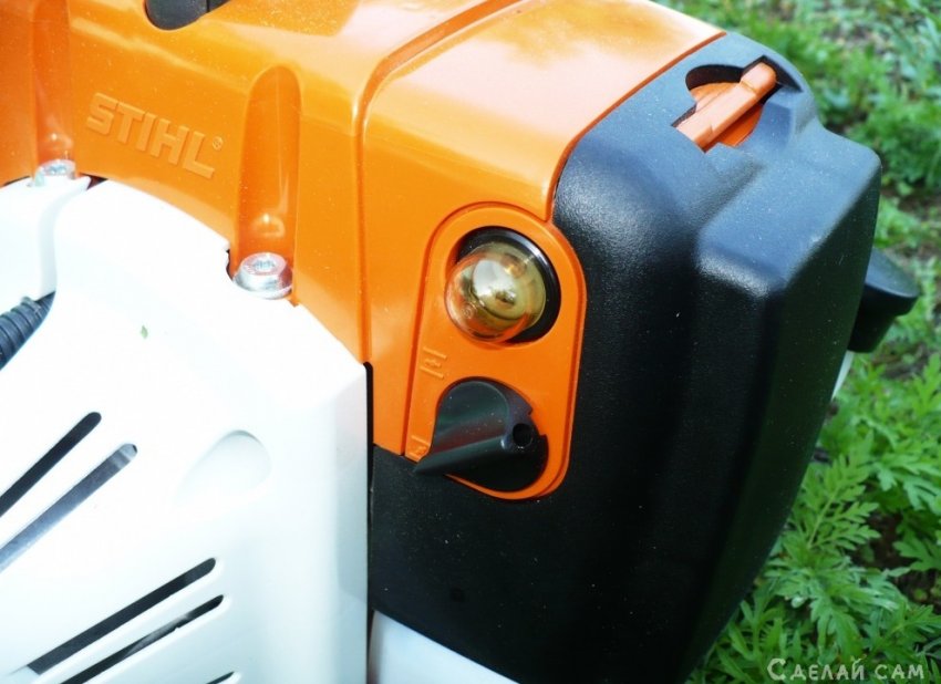 Обзор,сборка и первый запуск бензокосы STIHL FS 120. Всем привет,дачникам,огородникам и трудягам серпа и косы-сегодня сделаю небольшой обзор бензокосы а также некоторые нюансы сборки и первого пуска-погнали. В начале маленькое лирическое отступление-почему ШТИЛЬ а не кто то другой и прочее что-зачем и почему?На эту тему будет отдельное видео и статья-но уже не в этом году. Сегодня только затрону почему STIHL FS 120 а не скажем 5570 и другие модели по проще и дешевле. Итак трудяги,обзавелся этой косой по тому как живу в теплом регионе-трава прет,мама не горюй-как говорится косить-не перекосить. Купил ее в ближайшем к своей хацапетовке-городе,тут проблем нет. Характеристики . Мощн-1.8 лс,вес 6,5кг,,длина 176 см,емкость бака 650мл.Работает с ножом и леской. Комплектацию можно глянуть в живую в видео-не буду спамить фотками. По сборке-сложного особенно ничего нет в комплекте есть полная инструкция-но свои нюансы как всегда. Начал собирать с перекладины. Крепеж понятный и достаточно надежный.Все на болтах -никаких саморезов.Закручиваю основательно-но положение потом по ходу буду коректировать. Следом пошла ручка управления.Тут тоже держится все достаточно надежно. Не убегая далеко-прикручиваю сразу проушину для крепления ремня-ее предлагаю затянуть по туже-по тому как это будет удобней для дальнейшей регулировки положения косилки и ремней. Переварачиваю косилку на рогатину и переходим к сборке и установке защиты.У этой модели она одна-для ножа и лески.После сборки защиты-сразу можно прикрутить подрезной нож для лески-так будет удобней. Теперь можно ставить защиту на ее место-тут есть для этого площадка-держится все так же основательно-на болтах. Тут сделаю маленькую оговорочку-да мужики как человек творческий я не фанатик разных защит и мер безопасности,да и в работе это не всегда удобно-но поскольку во время работы мне постоянно прилетает в голову и глаза камни,куски лески и прочее-то предпочитаю работать с защитой и в нормальной одежде.На видео вы увидите меня в темных очках-это так для понтов и красивого кадра-а так я ни-нивсегда в каске)).Честно говоря искренне не понимаю товарищей которые работают без защиты и в шортах-а может просто я такой везучий)). Такс-двигаем дальше. Устанавливаю катушку с леской.Она и редуктор были заряжены с магазина. Теперь ставим косилку на ноги.Заправляем.Тут мужики тоже добавлю-масло в бензин лью то что рекомендует производитель-да как бы не чесались руки-что то изменить.В таких вещах не вижу смысла экономить 100-200 рублей. Дозировка и прочее показано в видео- так же не рекомендуют наливать в бак с горкой как мы любим)). Ну что -вот и дошли до самого интересного-сердечко волнуется-руки слегка дрожат-начинаем. Делаем пару подкачек-закрываем заслонку.И вот он -первый пускдерг-дерг-тишина.Да--забыл включить зажигание)). Повторяем-сердце бьется еще быстрей,руки трясутся тоже-дерг.взяла.затарахтела-теперь можно заслонку вернуть обратно. Пускаю заново-все работает как часики.Забыл сказать-косилка как сказали в магазине-была настроена-по этому лазить в карбюратор не нужно -да и честно особо и не хотелось- это тот приятный случай когда все сделанно до тебя-только пользуйся. Друзья пока не спешу с выводами по ней-что и как.по тому как на сегодня прокосил ею 20 с небольшим соток.для нее это пока мелочи.Брал эту косилку с запасом-для своег