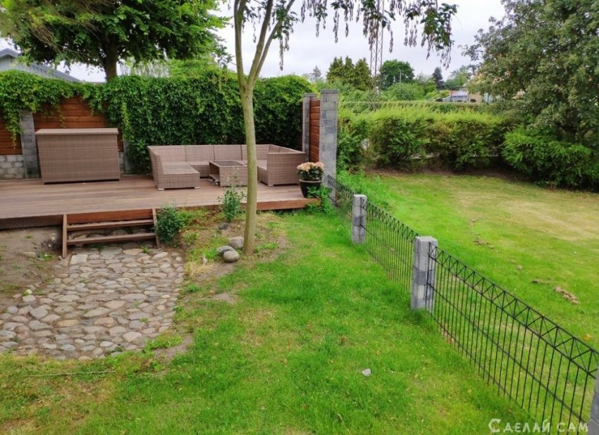 Сидячая работа за компьютером не позволяет много времени проводить под открытым небом. А ведь так хочется ощущать все прелести зелени/деревьев/свежего воздуха. Особенно летом. В этом году я реализовал свою давешнюю мечту - патио комбинированное со стеклянным навесом. Вот такой вот вариант. Даже в дождь можно спокойно работать на улице, за компьютером.