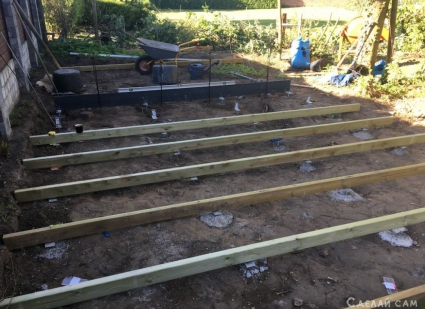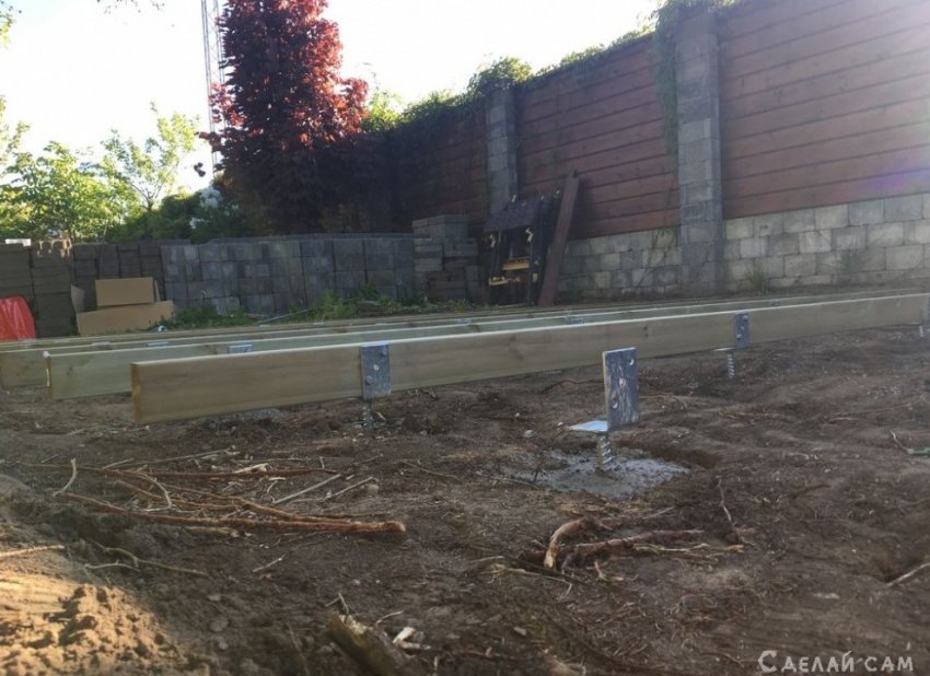 Пол на сваях. Маленьких, но сваях. Фундамент точковый.