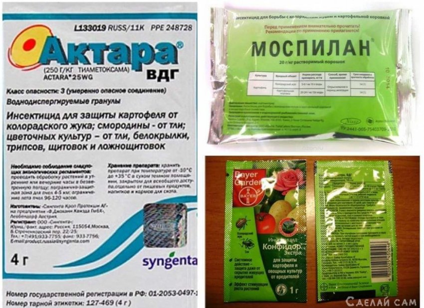 Хороший эффект даст применение препаратов, купленных в магазине. По своему действию они должны быть комплексными, т. е. уничтожать и личинки, и взрослых особей. Таким свойством обладают «Адмирал», «Актара», «Двойной эффект» и др. Эти препараты одинакового действия, но используют их по-разному.
