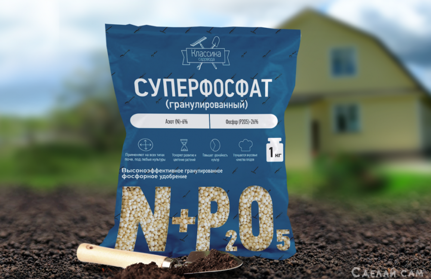 - Четвертый способ подкормки, это применение суперфосфата. Он способствует укреплению корней, помогает плодовой культуре пережить зиму без осложнений. Эту минеральную добавку рекомендуют применять в виде раствора с водой. Три столовые ложки на ведро воды.
