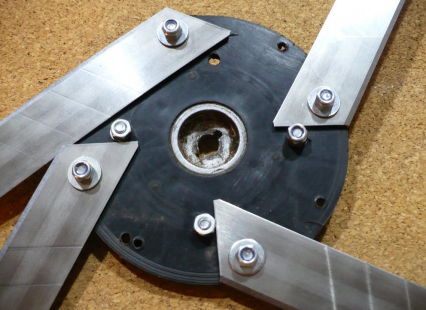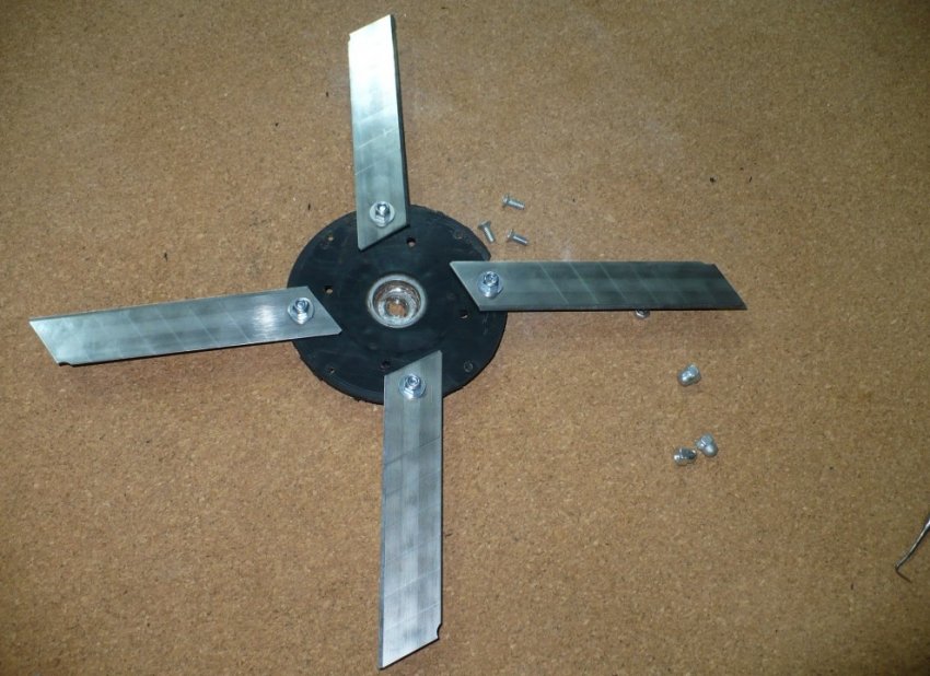 Прикрутил на нее лезвия.Лезвия не 18 а 25е они по мощнее и длинее.