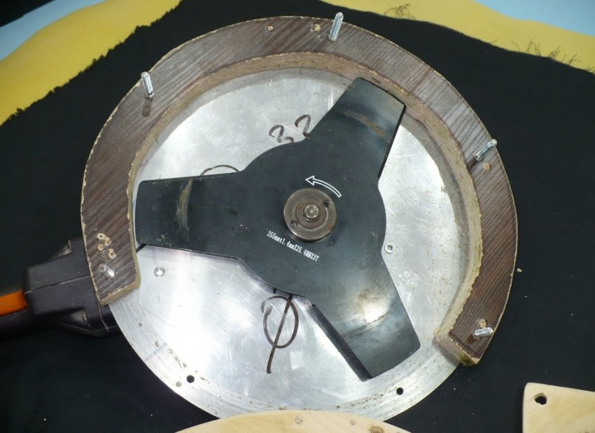 УСТАНОВИЛ НОЖ от бензокустореза.Подобрал по весу - не многим тяжелее диска по бетону для этой болгарки.