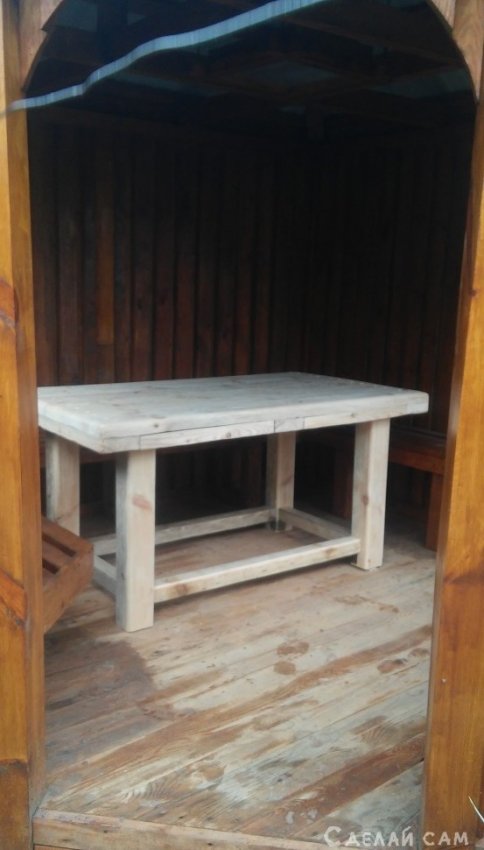 ніжки брус 100*100, кришка - дошка 140*50 (скрутив шпилькою)