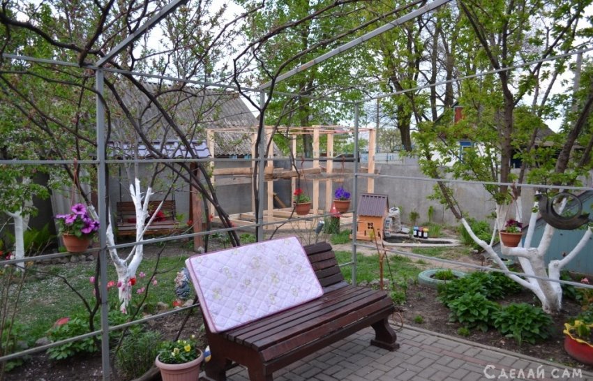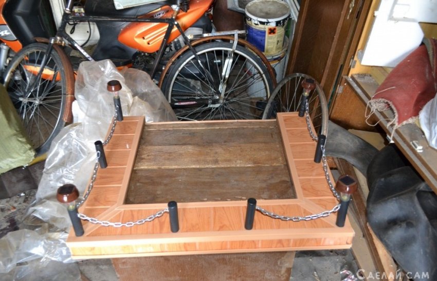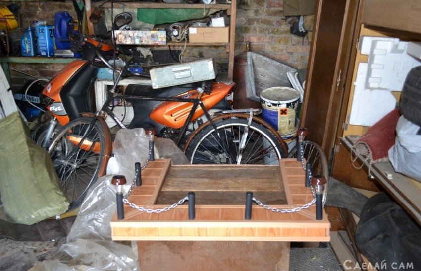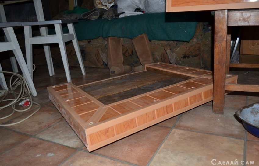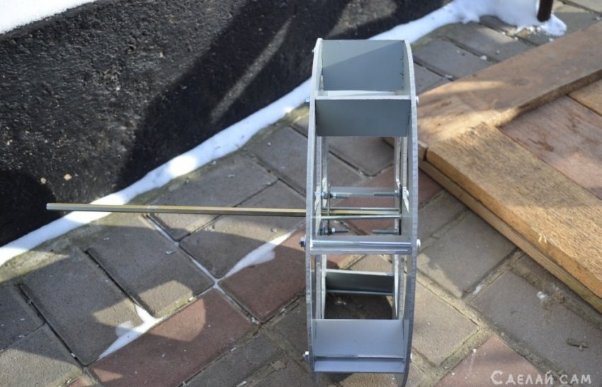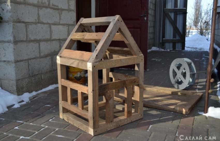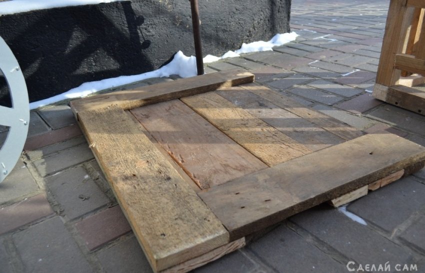 Піддон, на якому буде стояти майбутній млин збив з старих дощок.