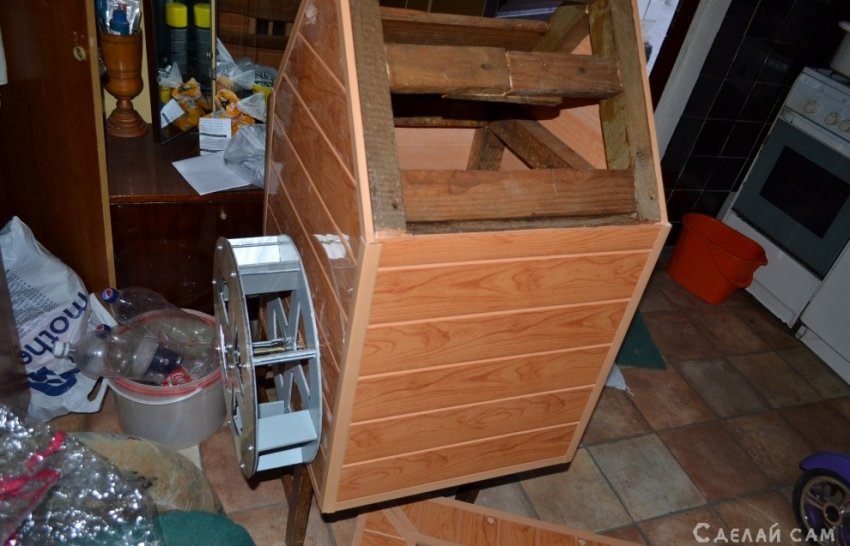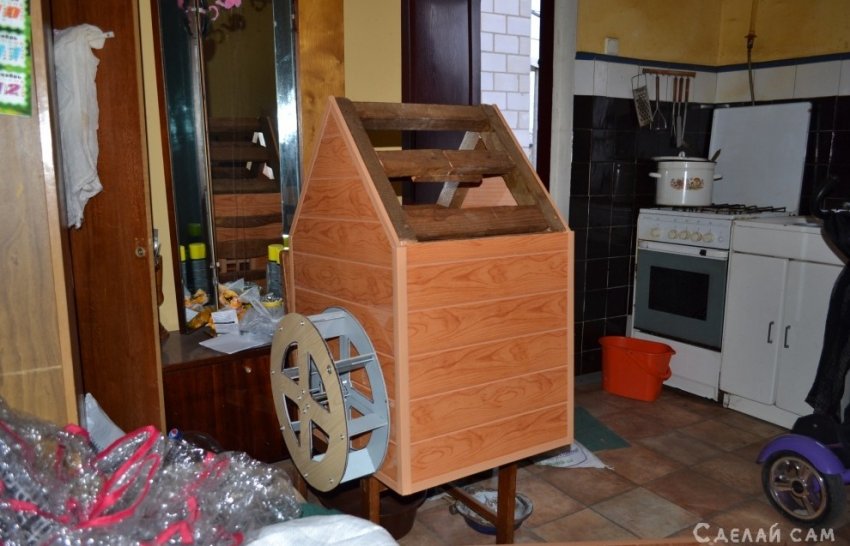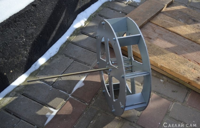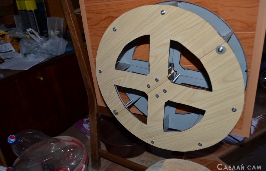 Саме колесо обшив пластиком під дерево з ліфтової створки