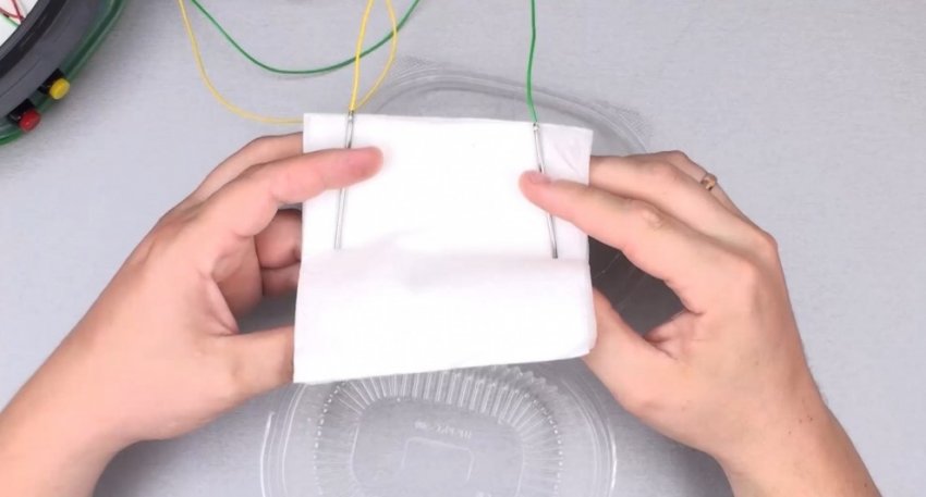 А можно электроды в землю(в поверхностный слой), но наверное придется подобрать резистор.