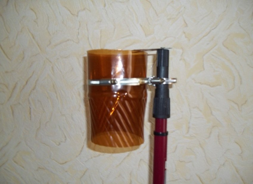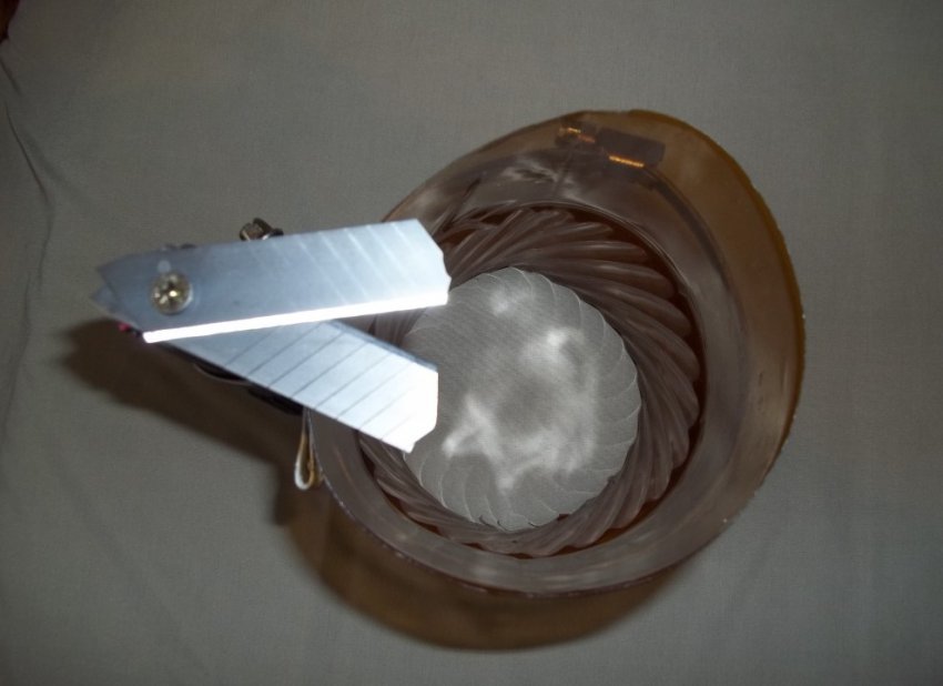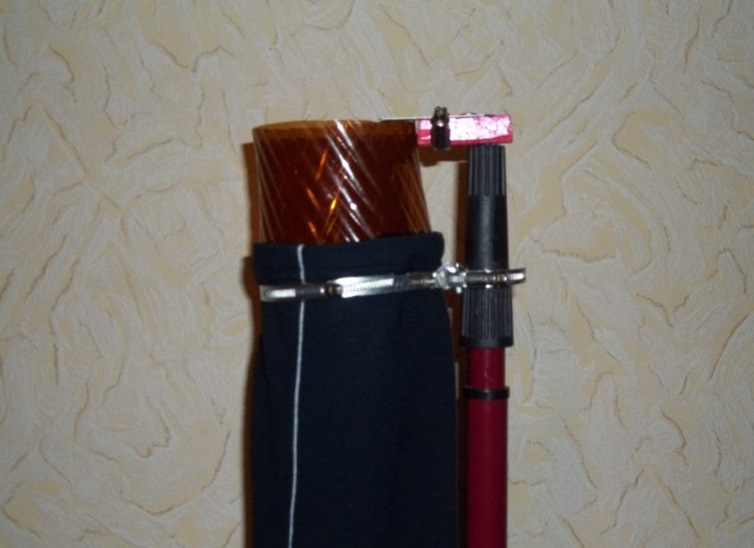 Первый вариант: в основание насадки для телескопической палки вкручиваем винт (шуруп) предварительно надев на него два обойных ножа. Не забыть проследить, чтобы ножи смотрели друг на друга режущими частями.