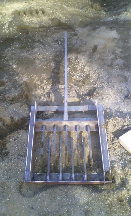 Габаритные размеры рамы (внутренние) ширина 40 см глубина 50 см. штык на вилах 30 см, а остальное на глазок. Высота ручки 120- 140 см(не мерил) какая была ту и приварил. Принцип работы в видео.