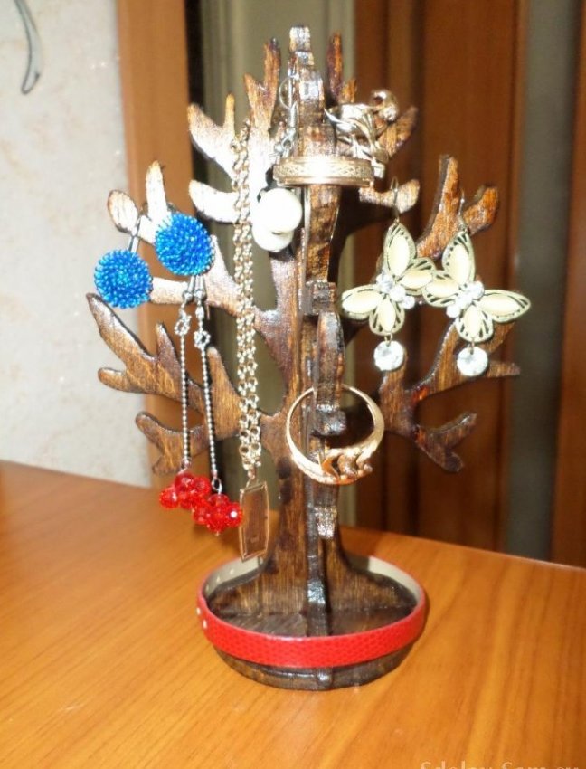Супруга сделала заказ на "выращивание дерева" для того чтобы снимая украшения и бижутерию не складывать их в коробку, а размещать как-то более оригинально. Вот и "вырастил". Скажу откровенно, эскиз дерева позаимствовал из виртуальной сети. Представляю для обозрения.