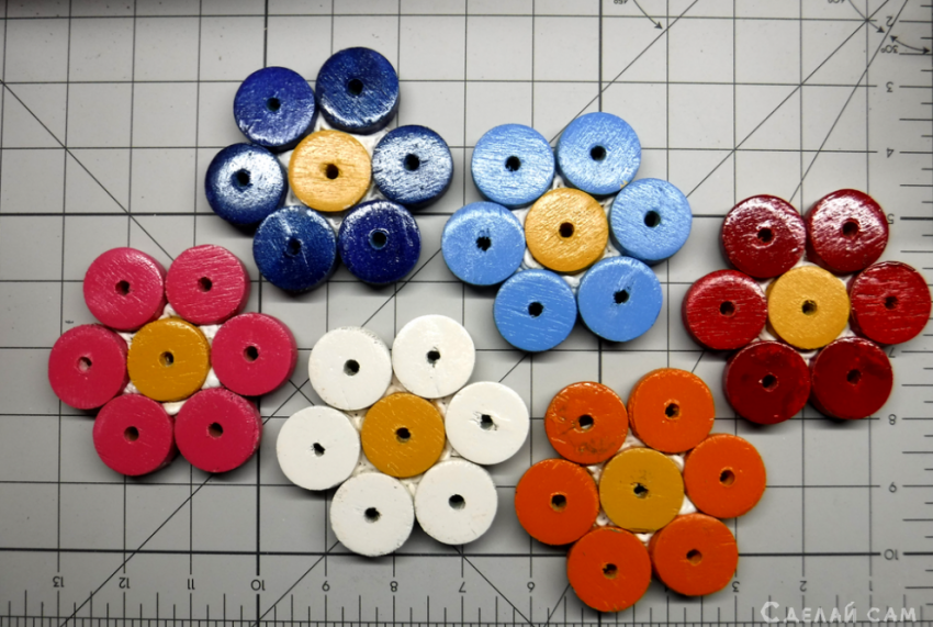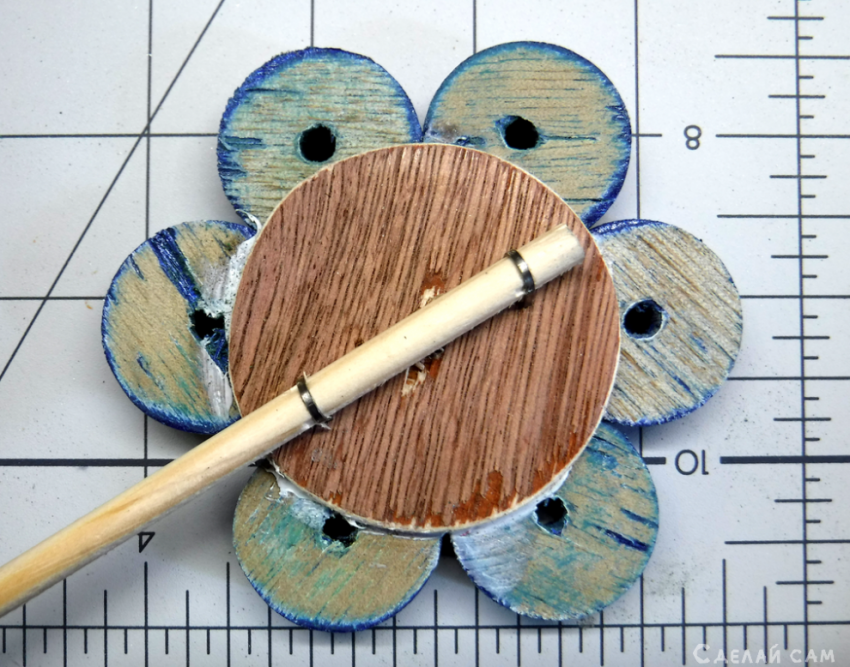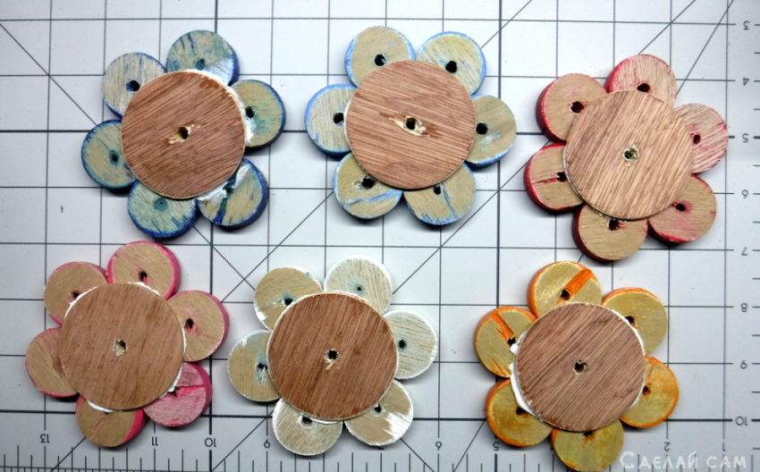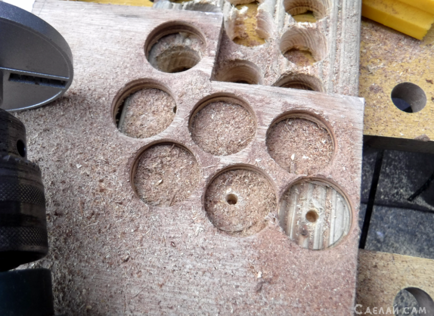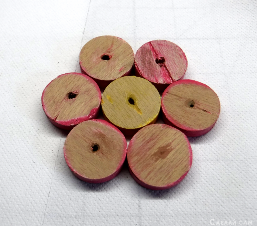Из фанеры вырезаем круги, из которых в последствии формируем цветы. Толщина фанеры - 3.5 мм. Нарезаем с помощью кольцевой пилы. 30 и 55 мм.