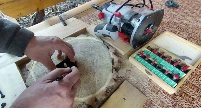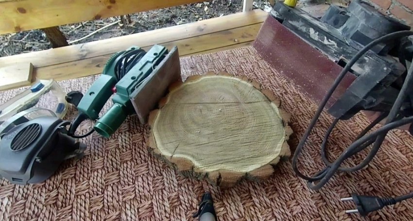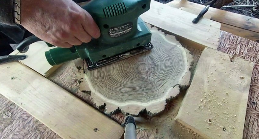Обрабатываем спил шлифовальной машиной